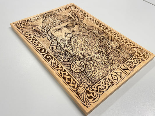 Odin Norse Mythology Wall Art – Allfather Viking God Engraved Wooden Wall Hanging Pagan Altar Decor