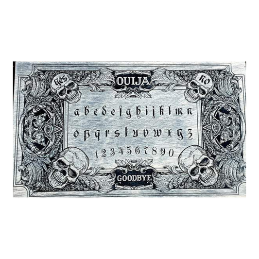 Gothic Ouija board with skulls wooden engraving with vintage design, love beyond death spirit board with memento mori planchette.
