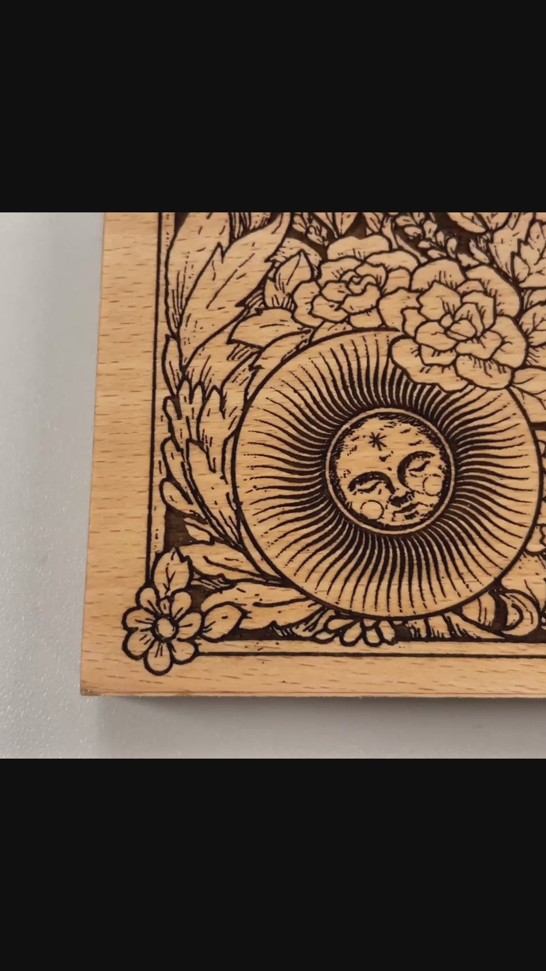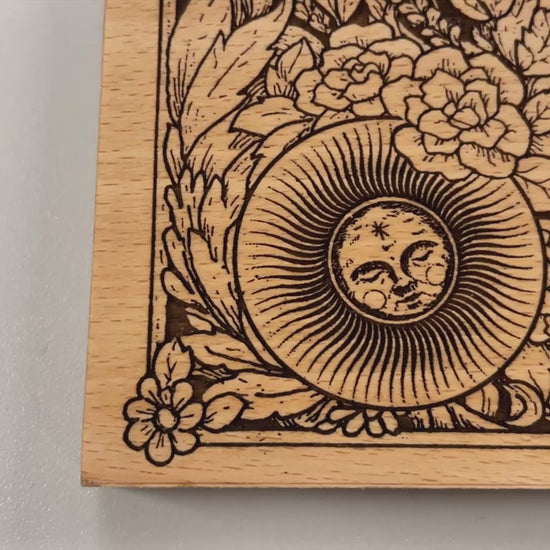 This handmade Ouija board is perfect for those interested in wiccan spirituality. Crafted from durable, laser-engraved plywood birch, the unique design features delicate flowers and butterflies, creating a cosmic and floral aesthetic. Ships from a small business in The Netherlands only on online shop available.