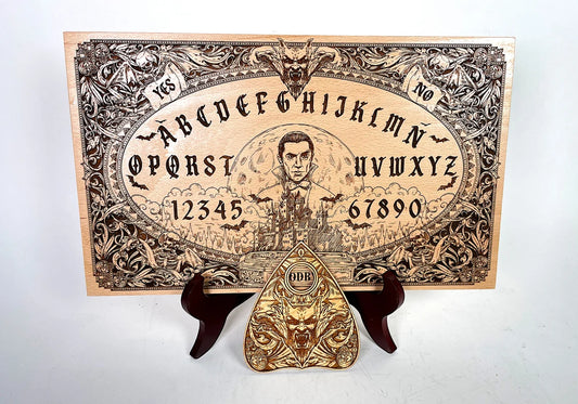 Vampire Nosferatu Dracula Ouija board engraved, Bela Lugosi Dracula spirit wooden board with planchette, vampire decor.
