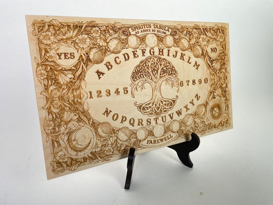 Ouija board wood engraved with Yggdrasil tree of life, floral moon pagan spirit board with sun and moon planchette, wiccan witchy gifts