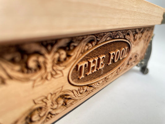 Tarot deck Box The Fool, wooden vintage style tarot deck holder, handmade tarot card storage