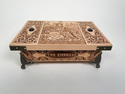 Tarot card holder with The Empress engraved in solid wood tarot deck storage, wooden tarot card keepsake box or jewelry box, handmade gift.