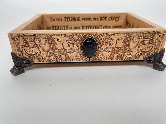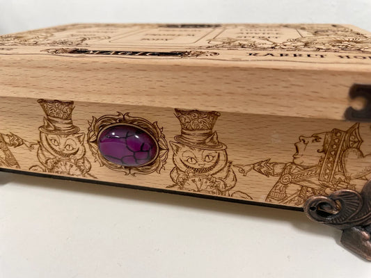 Wooden box for tarot cards Alice in wonderland , Alice in the wonderland tarot box handmade from solid wood, Cheshire Cat, wonderland gift.