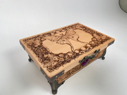Tarot box As above so below wicca design, crystal storage box, wicca keepsake box wood, una moth design.