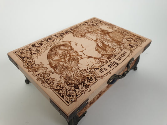 Valhalla viking box, jewelry Mjolnir hammer viking gift made solid wood, Thor crystal tarot box wood viking art, Norse mythology Vegvisir.