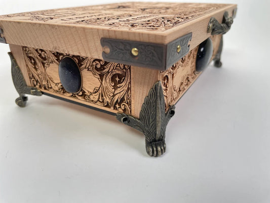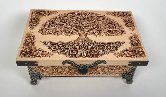 Tree of life floral tarot keepsake box, jewelry box tree of life made of solid wood, floral alchemy crystal tarot wooden keepsake box.